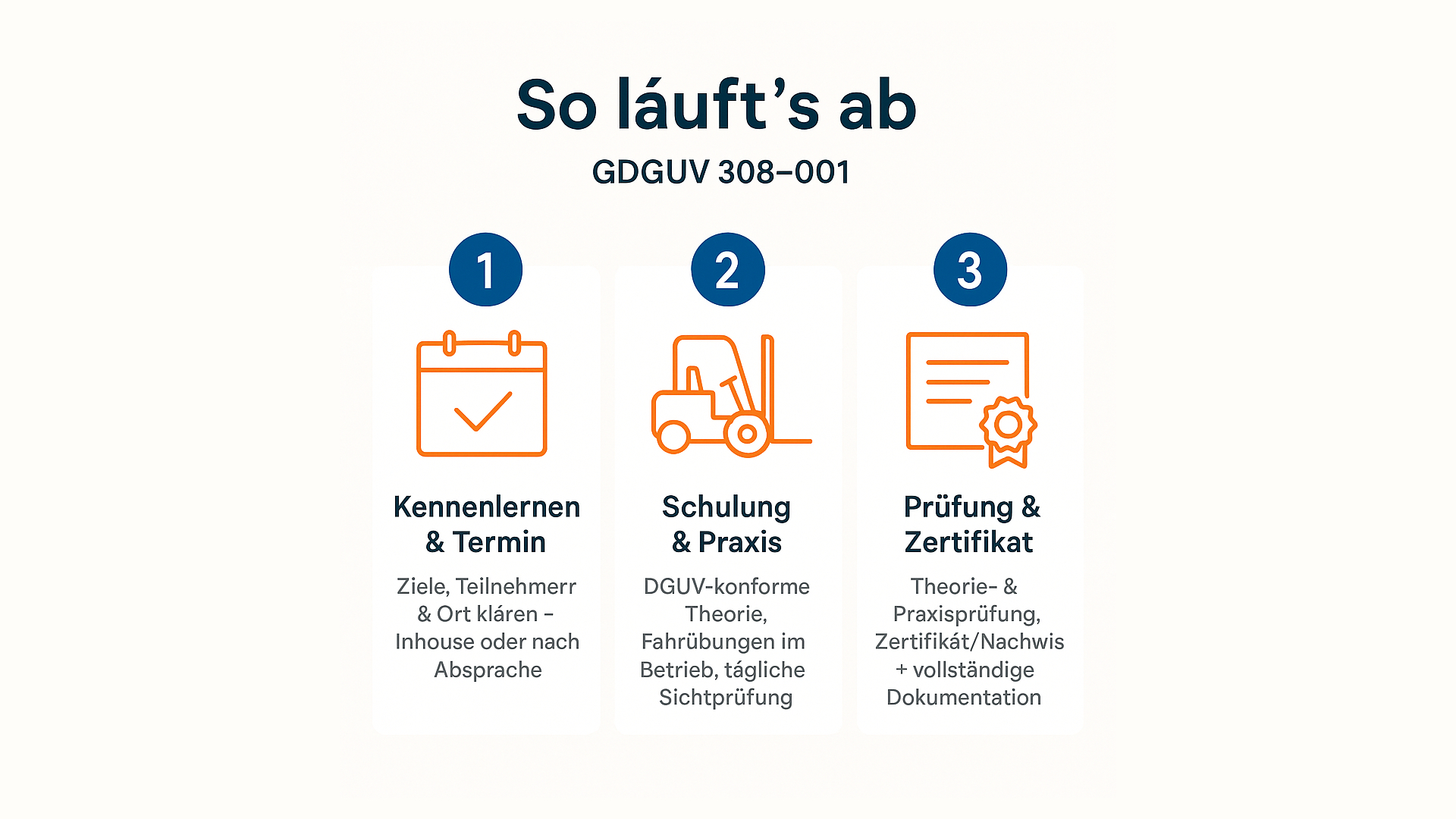 Lernen Sie bei uns alles rund um den sicheren Umgang mit dem Gabelstapler. Unsere Schulungen sind praxisnah, erfüllen alle gesetzlichen Anforderungen und bereiten Sie optimal auf die Prüfung vor.